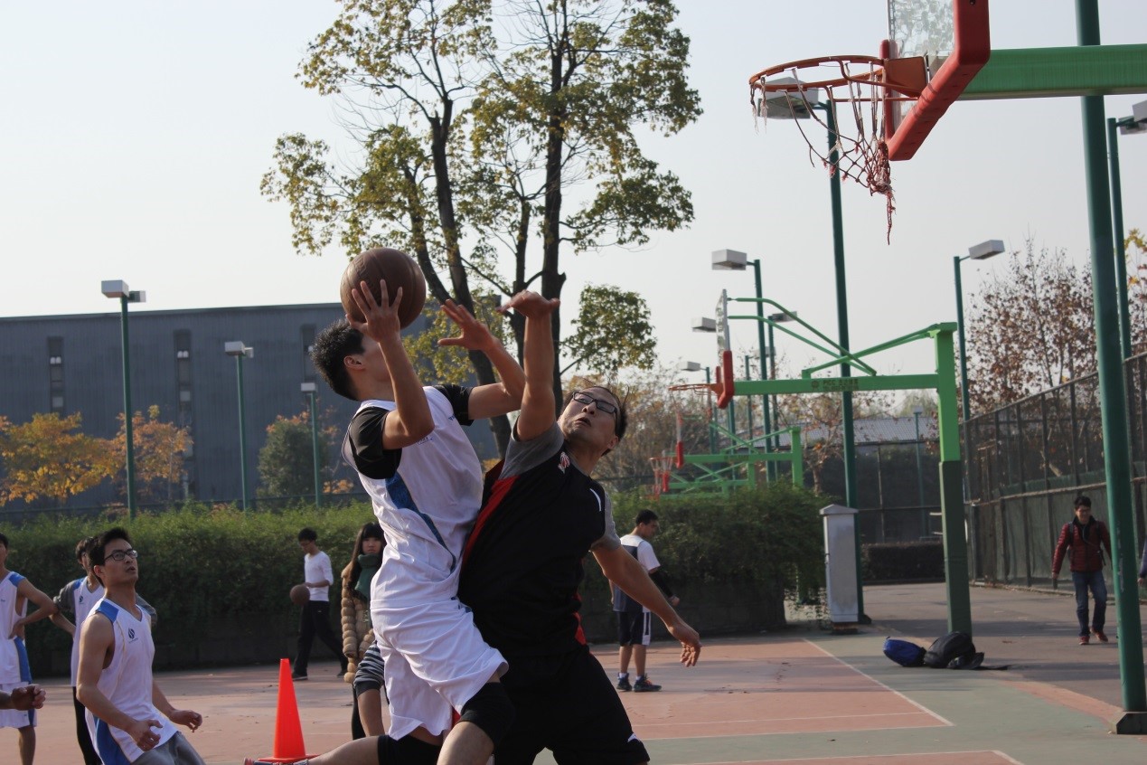 虽然是在冬日,但篮球赛却也燃烧着每个在球场的人。球员们自信勇敢,全然没有冷风下瑟瑟发抖的孱弱形象,咬紧每个球,努力守住球和赢球。比赛友谊第一,对手是最好的朋友。球赛免不了相互摩擦碰撞,双方也能相互理解。在13级本科生与14级本科生比赛中,两只今年新加盟联赛的球队都有不俗表现。13级队员们配合默契,主力球员陈开冲击力不容小觑,善技巧,熟练帅气地控制篮球。14级新生组成的球队虽然战败,但球场上少年意气风发,后生可畏。一队员在比赛过程中撞向计数台,看出他深陷比赛,无法自拔,努力打篮球如此,虽败犹荣。赛后球员们继续练球,双方队员们相互交谈,分享经验。