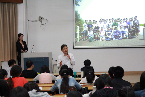 之后由14级硕士外科班班长陈天池与同学们分享科研路上的点滴心得。作为科研型研究生,陈天池向对科研充满期待的同学们透露了科研生活的大致模样。他讲到,科研生活是辛苦而忙碌的,科研人应该有吃苦耐劳的精神,要有团队意识,同时积极向上的心态也是十分重要的。此外,他还给同学们分享了杭州周边的多处美景,并鼓励同学们培养并坚持自己的兴趣爱好,能有一技之长。
