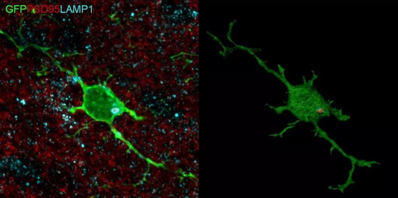 海马中的印迹细胞之间的突触连接被认为是记忆存储的基质。以前的研究表明,突触的弱化或缺失会导致遗忘。通过高分辨率成像,研究人员发现海马的小胶质细胞中,存在着神经元突触的成分,并且与小胶质细胞中的溶酶体共定位,表明成年海马中的小胶质细胞仍然具有吞噬突触结构的能力。当用米诺环素(minocycline)抑制小胶质细胞的吞噬作用时,遗忘被显著阻断。