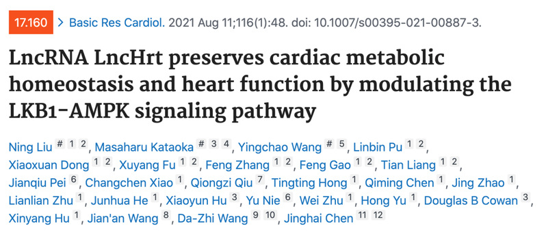 近日,浙江大学转化医学研究院/日韩欧美福利视频_黑人巨大人精品欧美三区_欧美成人另类人妖_欧美在线精品一区二区三区_欧美一区二区三区性视频_日韩精品欧美视频_性欧美极品xxxx欧美一区二区附属第二医院陈静海研究员、哈佛医学院波士顿儿童医院Da-Zhi Wang教授和日韩欧美福利视频_黑人巨大人精品欧美三区_欧美成人另类人妖_欧美在线精品一区二区三区_欧美一区二区三区性视频_日韩精品欧美视频_性欧美极品xxxx欧美一区二区附属第二医院王建安教授的联合团队在Basic Research in Cardiology 杂志发表LncRNA LncHrt preserves cardiac metabolic homeostasis and heart function by modulating the LKB1-AMPK signaling pathway的研究论文。报道了心肌细胞富集的长链非编码RNA LncHrt通过调节SIRT2-LKB1-AMPK 激酶信号级联反应,保护心梗后心脏能量代谢稳态,改善心脏缺血损伤后的结构与功能,揭示了新的基于RNA治疗的潜在靶点。