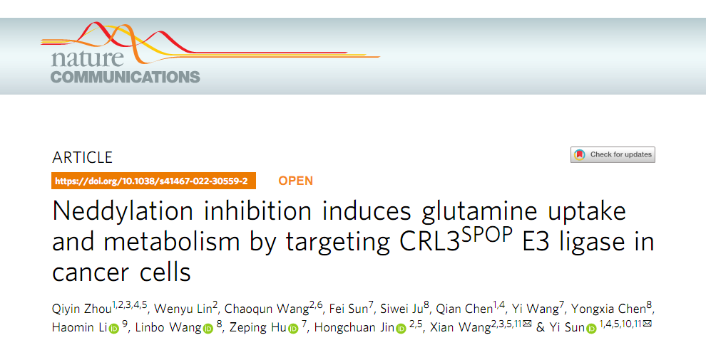 NatCommun|浙江大学转化医学研究院孙毅教授课题组发现拟素化修饰调控肿瘤细胞谷氨酰胺吸收和代谢